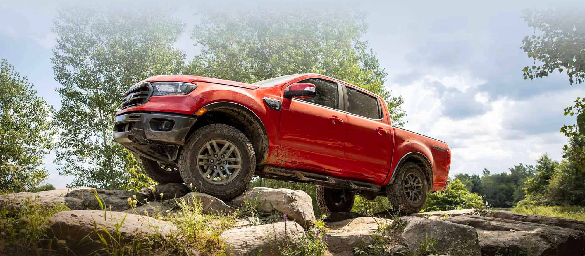 The 2021 Ford Ranger is built for serious off-road travel. Ready for adventure, its approach and departure angles help it climb hills and clear obstacles. Ranger 4×4 models also boast 8.9″ of ground clearance for more capable navigation on uneven territory, while Ranger models equipped with the new Tremor Off-Road Package deliver an even more impressive 9.7″ of ground clearance. And even more confidence to help get you up and over obstacles on your next adventure, Ranger has the best breakover angle in its class (increased even further with Tremor). * And for protection while you navigate rough terrain, the FX4 and Tremor Off-Road packages include an exposed steel front bash plate and undercarriage skid plates. Ranger also offers 4H and 4L gear ratios, providing increased torque for low-speed off-road situations.